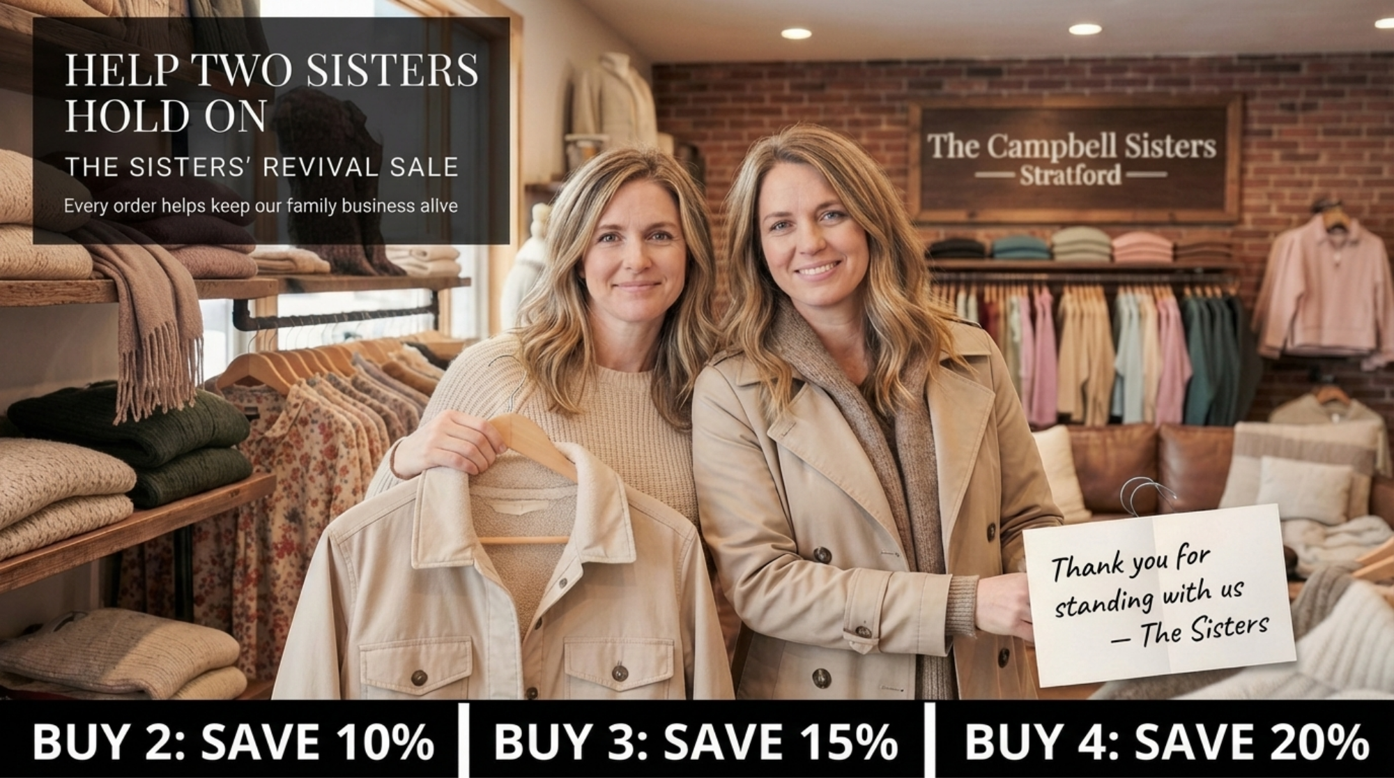 This isn’t just a promotion — it’s our way of holding on. Holding on to our store. Holding on to our work. Holding on to the life we built together.
